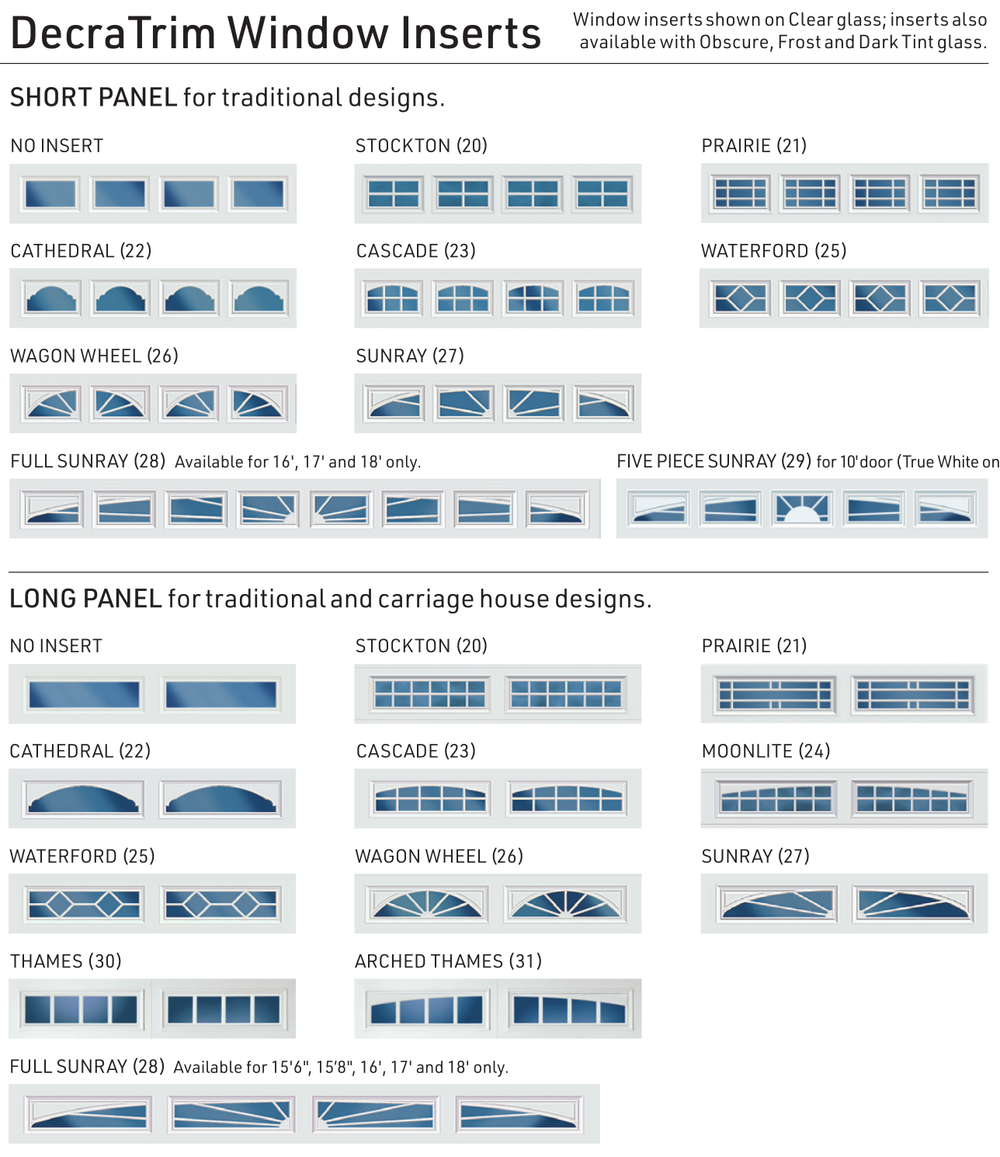 Below are some of our most common window options for doors. Some specialty doors will come with very different options, so, please reach out to our door specialist team if you do not see what you are looking for!